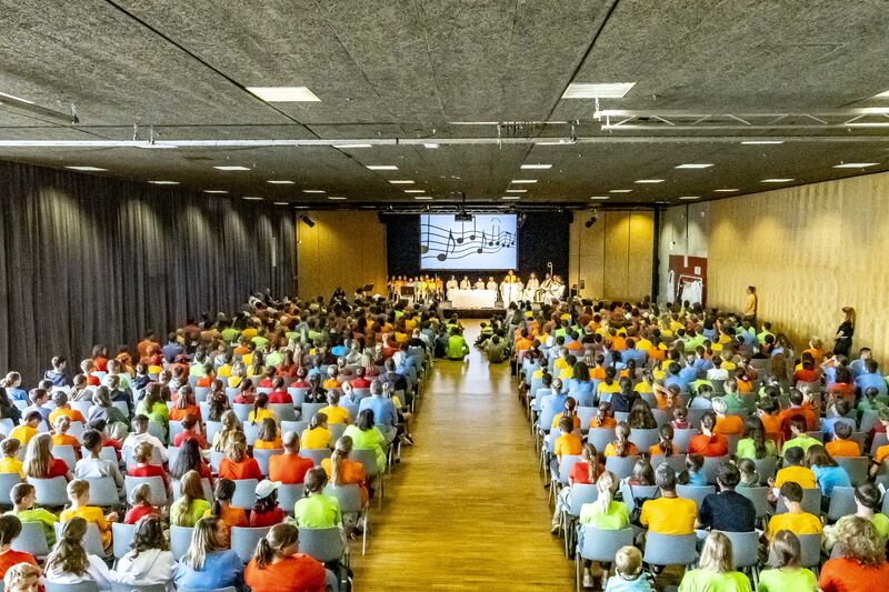 Überraschend gross ist das Interesse an der Eucharistiefeier, die in einem Saal im Obergeschoss der Olma-Halle angeboten wird. Die fünfhundert Sitzplätze sind im Nun belegt, einige Kinder und Jugendliche müssen am Eingang abgewiesen werden – anstatt zweimal wird die Messe spontan ein drittes Mal angeboten. Die Botschaft des Gottesdienstes: Gott hat alle als Original erschaffen, das macht die Welt bunt und vielfältig. «Es braucht jeden einzelnen von uns», sagt der St.Galler Pater Raffael Rieger in seiner Predigt zu den Mitfeiernden.