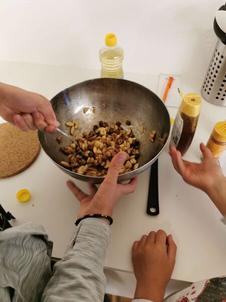Einige backten dazu noch feine Nüsse, die mit Honig und Curry (oder auch ganz ohne Curry) verziert wurden.