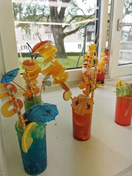 Beim Mädchentreff ging es richtig farbig zu und her! Vom Fruchtspiess über Gummibärlispiess, Zuckerrand bis hin zu kleinen Sonnenschirmen wurde letzten Mittwoch fleissig an bunten Mocktails gemixt. Die Mädchen aus Engelburg kreierten farbige Mocktails - teils nach Rezept, teils nach eigener Idee.